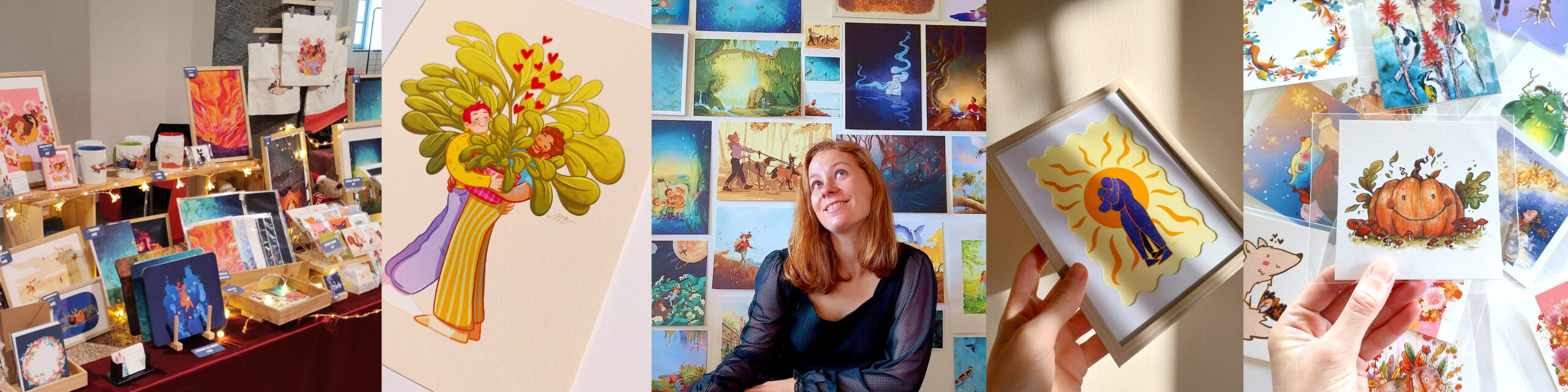 Je vends mes illustrations sur des marchés et dans des jolies boutiques ! Je suis toujours à la recherche de nouveaux endroits où exposer.